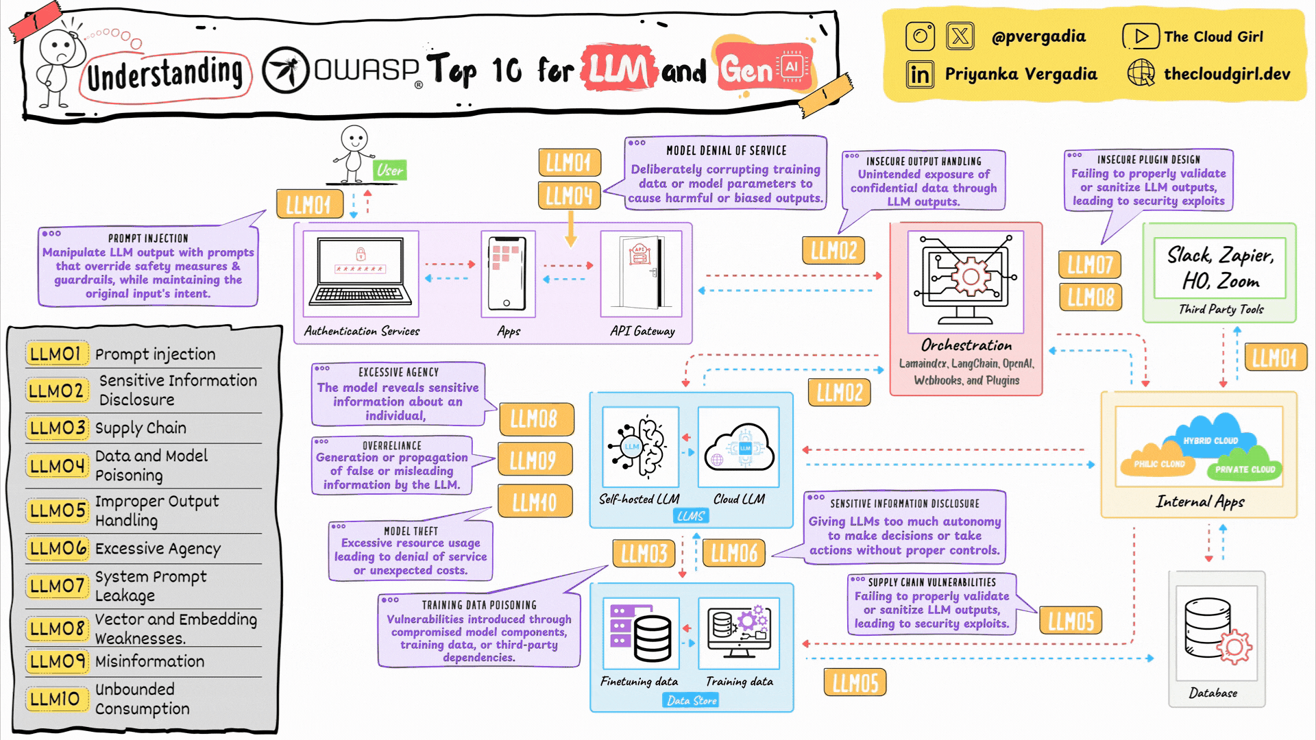 OWASP Top 10 for LLMs and GenAI using an architecture diagram